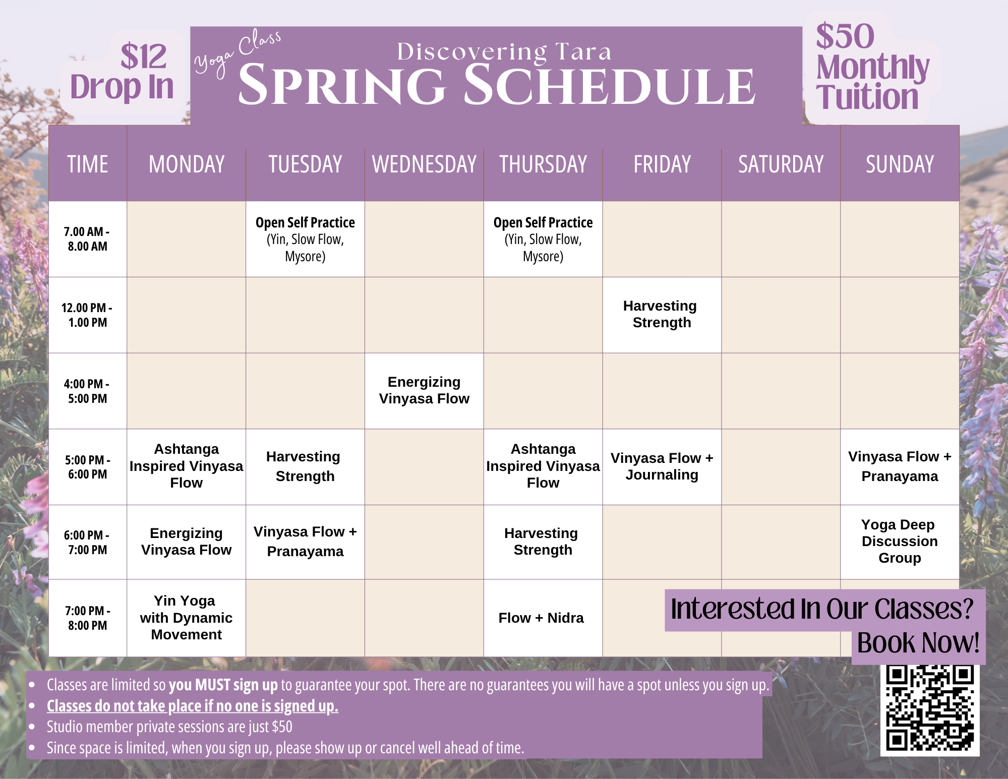 $50 Class Monthly Tuition